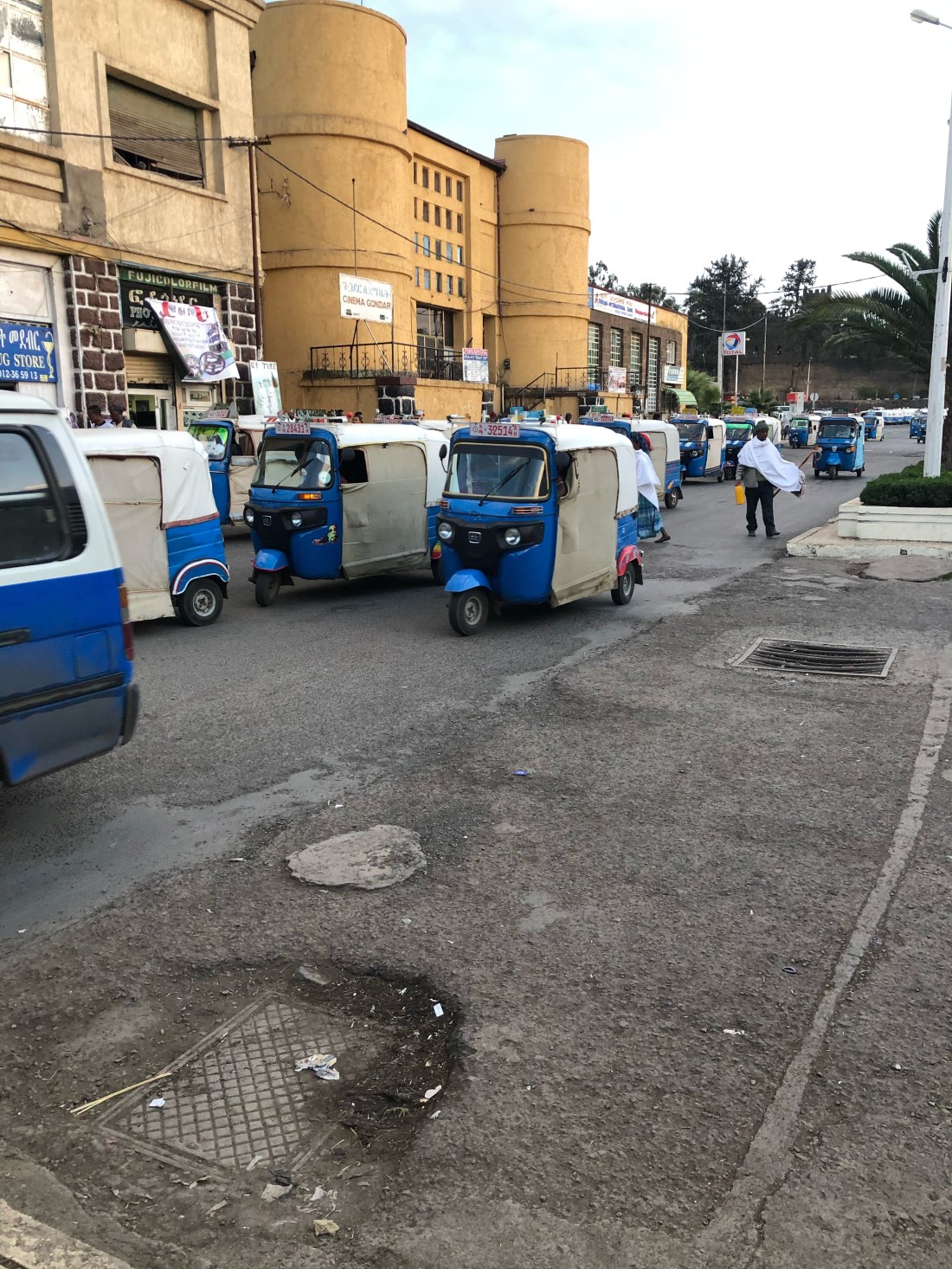 I wander about the city, which exudes a degree of self-confidence that was not in evidence in Sudan. If in Dongolo the bustle seemed almost furtive, a necessity to glide as unobtrusively as possible from point A to point B; in Gondar, the men and women walked with an easy sway that said, we are masters in this place. They approached us with a familiarity that seemed to be token long acquaintance, starting conversations that soon turned into offers for trekking tours or guides to markets or to historic sites. The greatest danger seemed to be avoiding the hundreds of tuktuks that plied their trade in every now and cranny of the city.