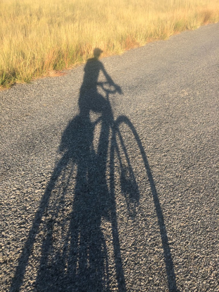 R cycles as she walks, a saunter that is a touch too deliberate to be casual. It hints at purpose and determination that for whatever reason cannot be fully revealed. So it is with her pedal strokes, powerful yet by some trompe d’oeil they appear as that of a Sunday cyclist. Yet the appearance is belied by the reality that within minutes she is a disappearing figure on the horizon.